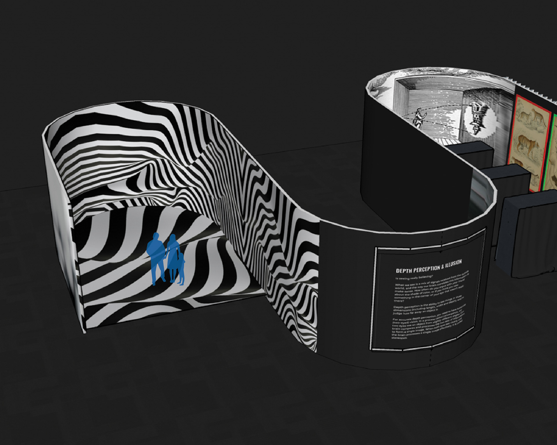 This project envisioned the creation of the In:Vision exhibition, immersing visitors in the intricacies of human vision and perception. Through six thematic stations, the exhibition guided attendees through nodes, exploring diverse eye colours, optical illusions, and the history of cameras. Utilizing 3D modelling, a prototype of the concept was developed to visualize the immersive experience. Seamlessly blending visual storytelling with interactive exhibits, In:Vision offered a captivating journey into the fascinating world of sight and cognition.