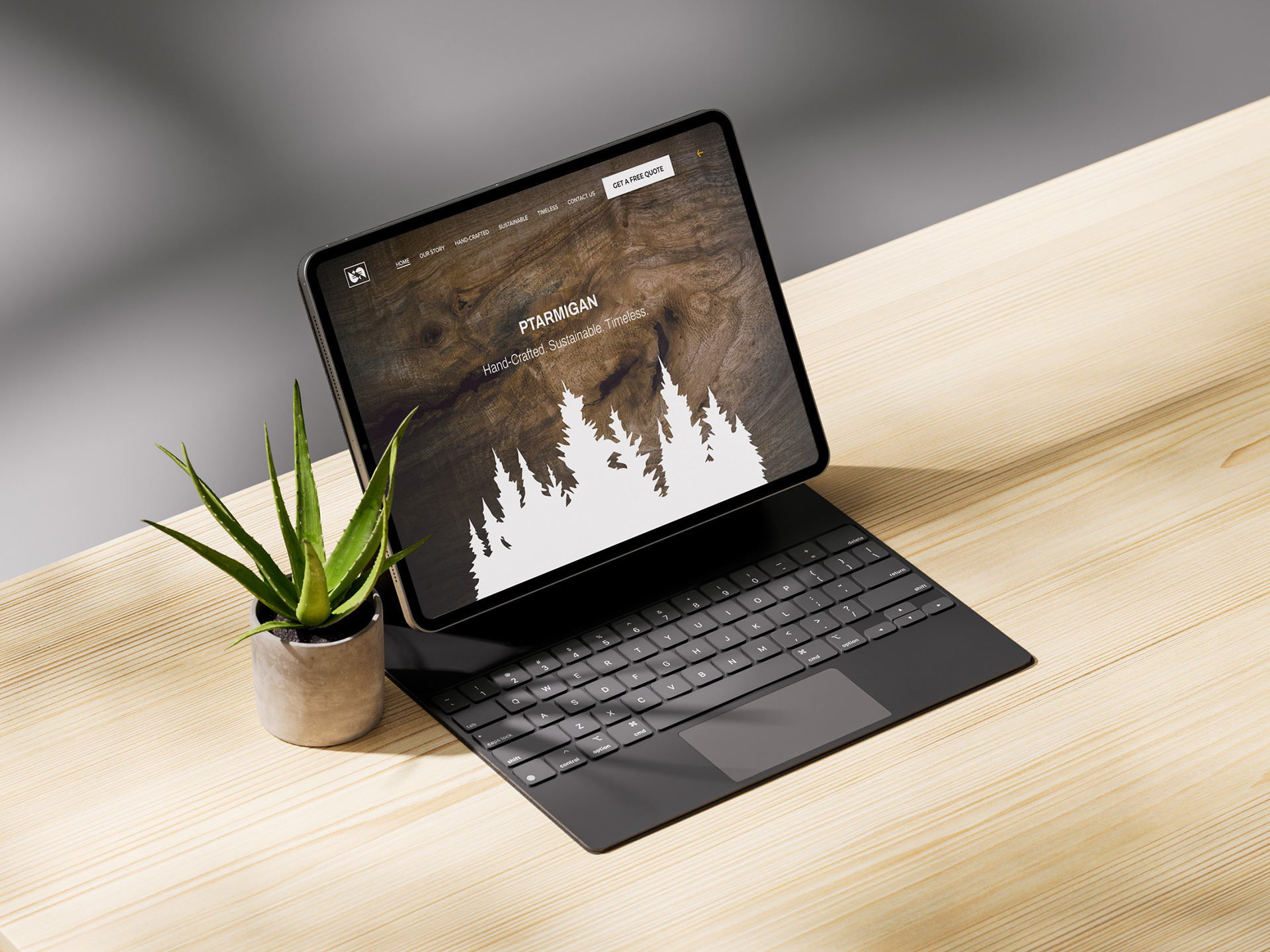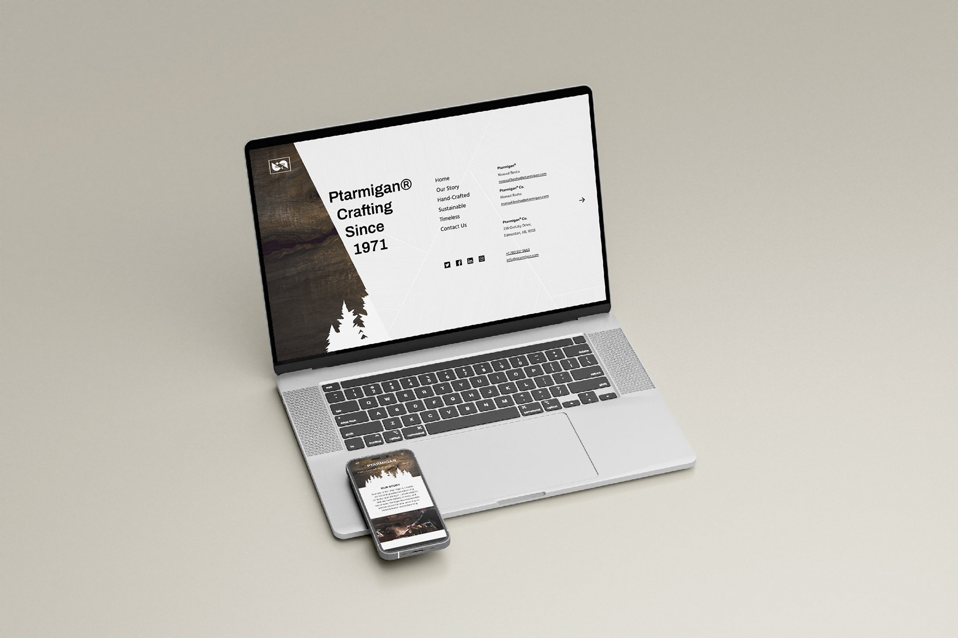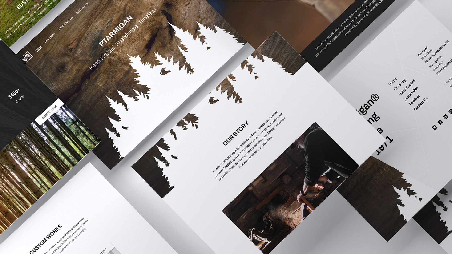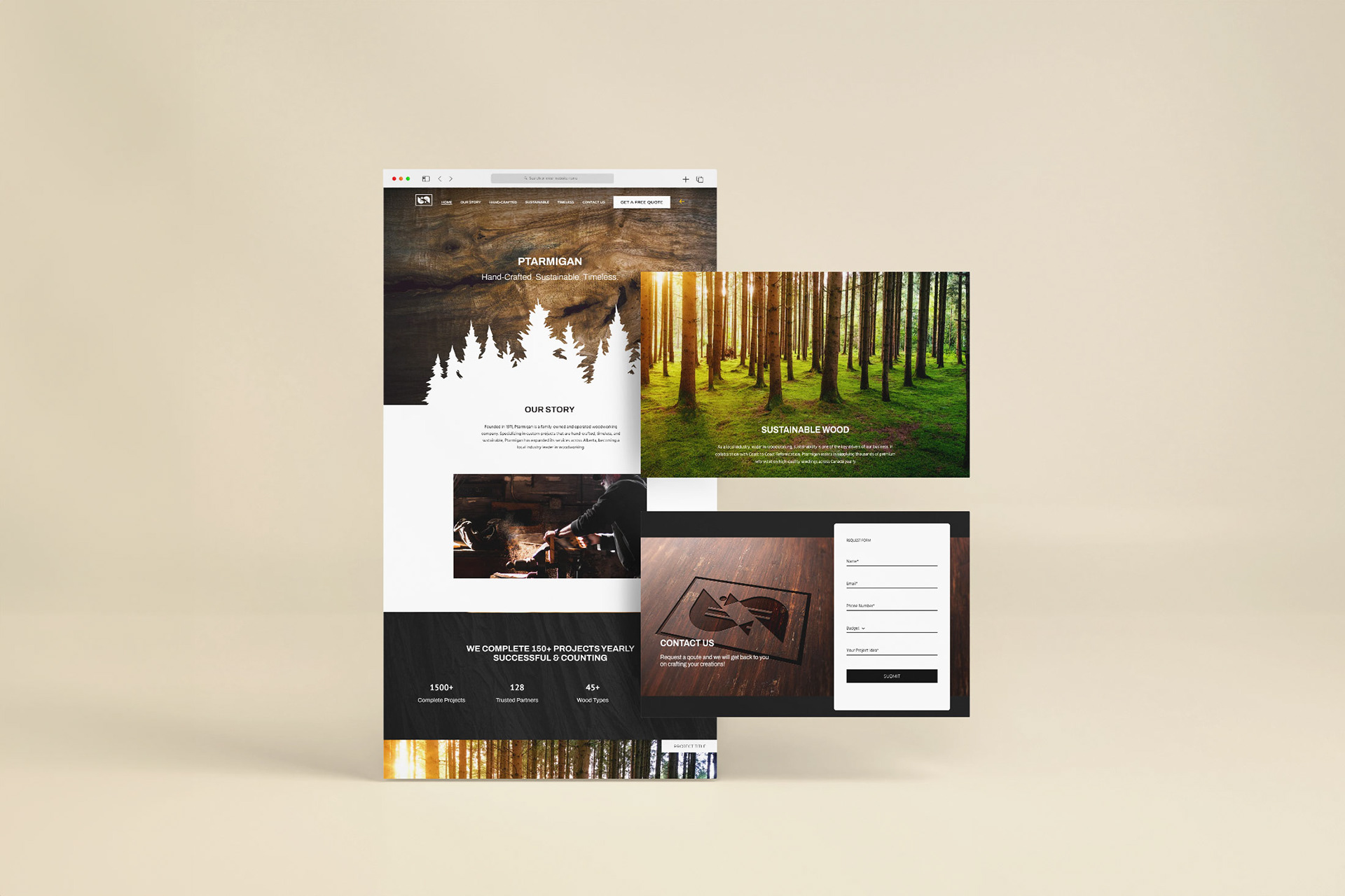 This project involved designing and coding a website for Ptarmigan, highlighting their handcrafted, sustainable wood products. Using HTML and CSS, the site featured a clean, minimalistic design for seamless navigation. Anchored navigation links, interactive menus, and a request-a-quote feature were implemented to enhance user experience. High-quality images and video, integrated through coding, highlighted Ptarmigan's craftsmanship, providing a visually captivating platform to engage potential clients.