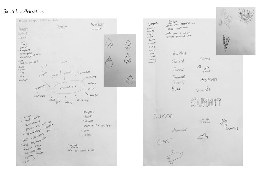 This project involved designing a brand identity for Summit Essential Oils, maintaining a minimalist style to embody the natural aesthetic. Every element was curated to evoke a sense of purity and simplicity, with careful consideration given to font pairings that complemented the illustrations on the packaging. From the clean logotype featuring the Avenir typeface to the serene imagery of mountain peaks and botanicals, each aspect harmoniously contributed to the brand's authentic essence and visual appeal.